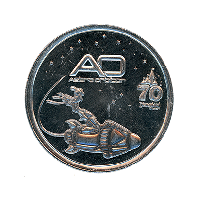 reeded edge . First reported onstage December 25, 2025. This set of medallions probably replaced the #214-217 set of medallions. This souvenir machine was located in the exit to Space Mountain, near The Star Trader Gift Shop in Tomorrowland, Disneyland Park, Anaheim, California, USA. This souvenir