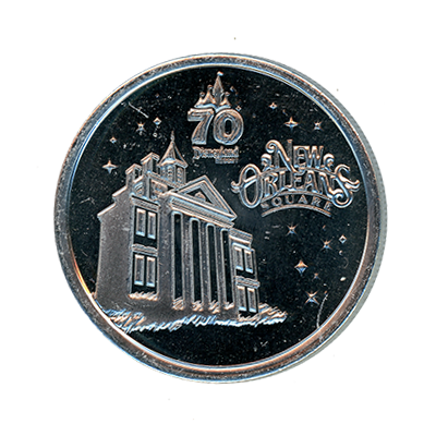 reeded edges. Colorized medallions featured colored devices. All except for the #222 Magic Key Terrace 70th Anniversary medallion (